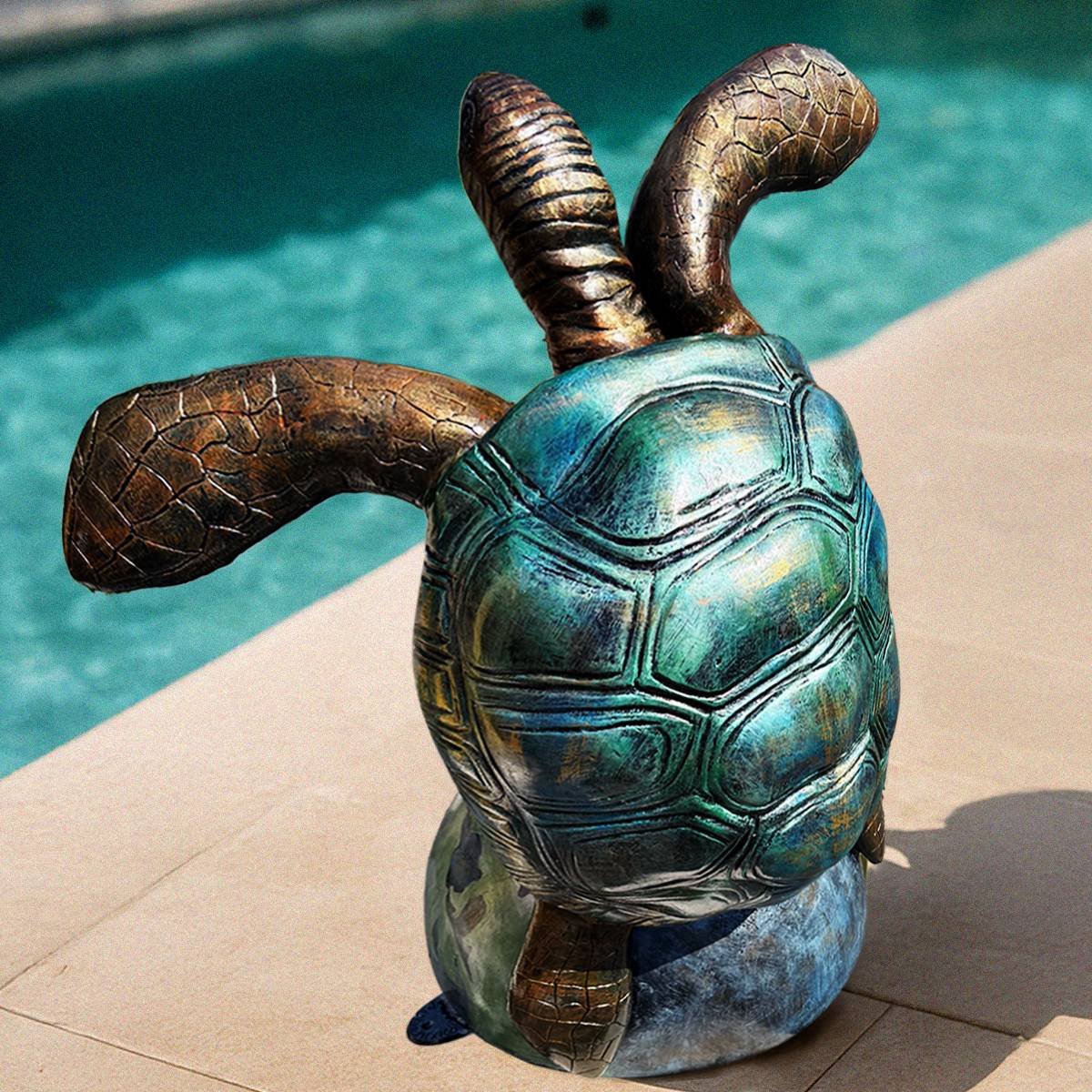Celebrate the beauty and harmony of our planet with the Sea Turtle on Globe Statue — a life-inspired sculpture featuring a graceful sea turtle gliding across a textured globe. Designed to evoke a sense of conservation, movement, and wonder, this custom-crafted piece brings a peaceful, oceanic presence to gardens, patios, conservation centers, and coastal retreats.