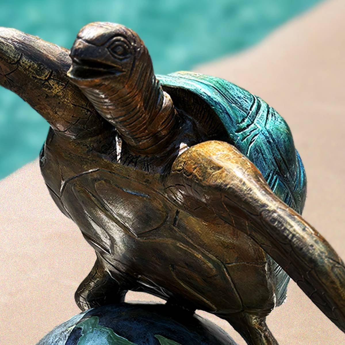 The Sea Turtle on Globe Sculpture is a powerful celebration of ocean life and global unity.